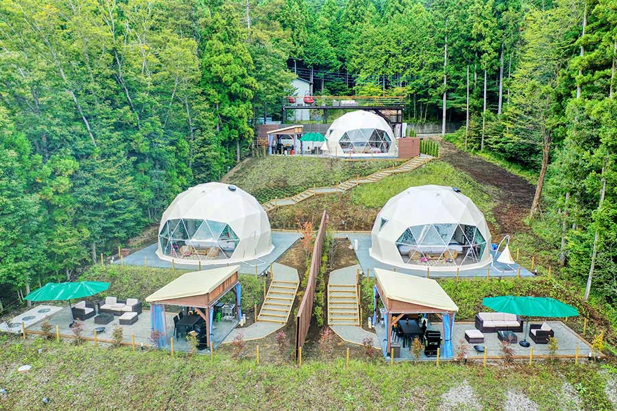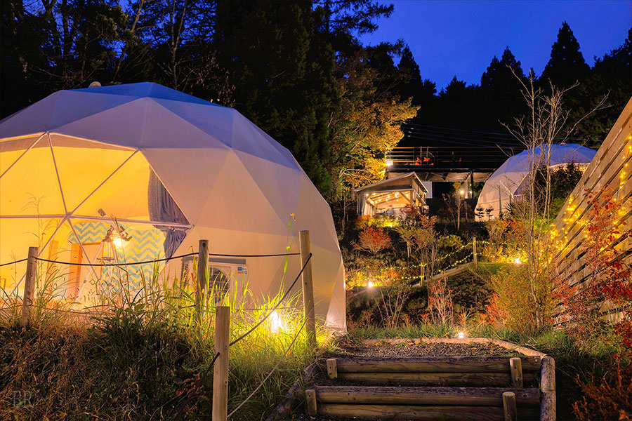 プライベート空間にこだわったドームテントからは、全室から富士山を望める絶景設計。