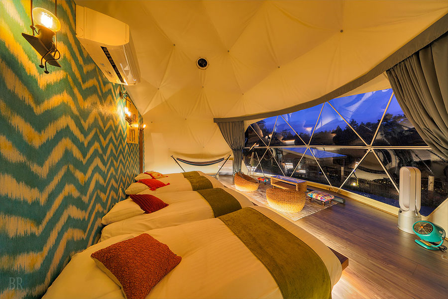 ドームテントの中はエアコンを完備。どの季節でも快適にお過ごしいただけます。