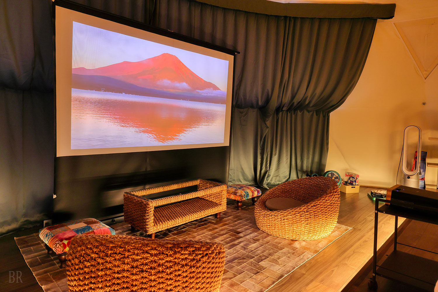 お部屋ではプロジェクターで映画やゲーム、天体観測・プライベートキャンプファイヤー等、アクティブにお過ごしください。