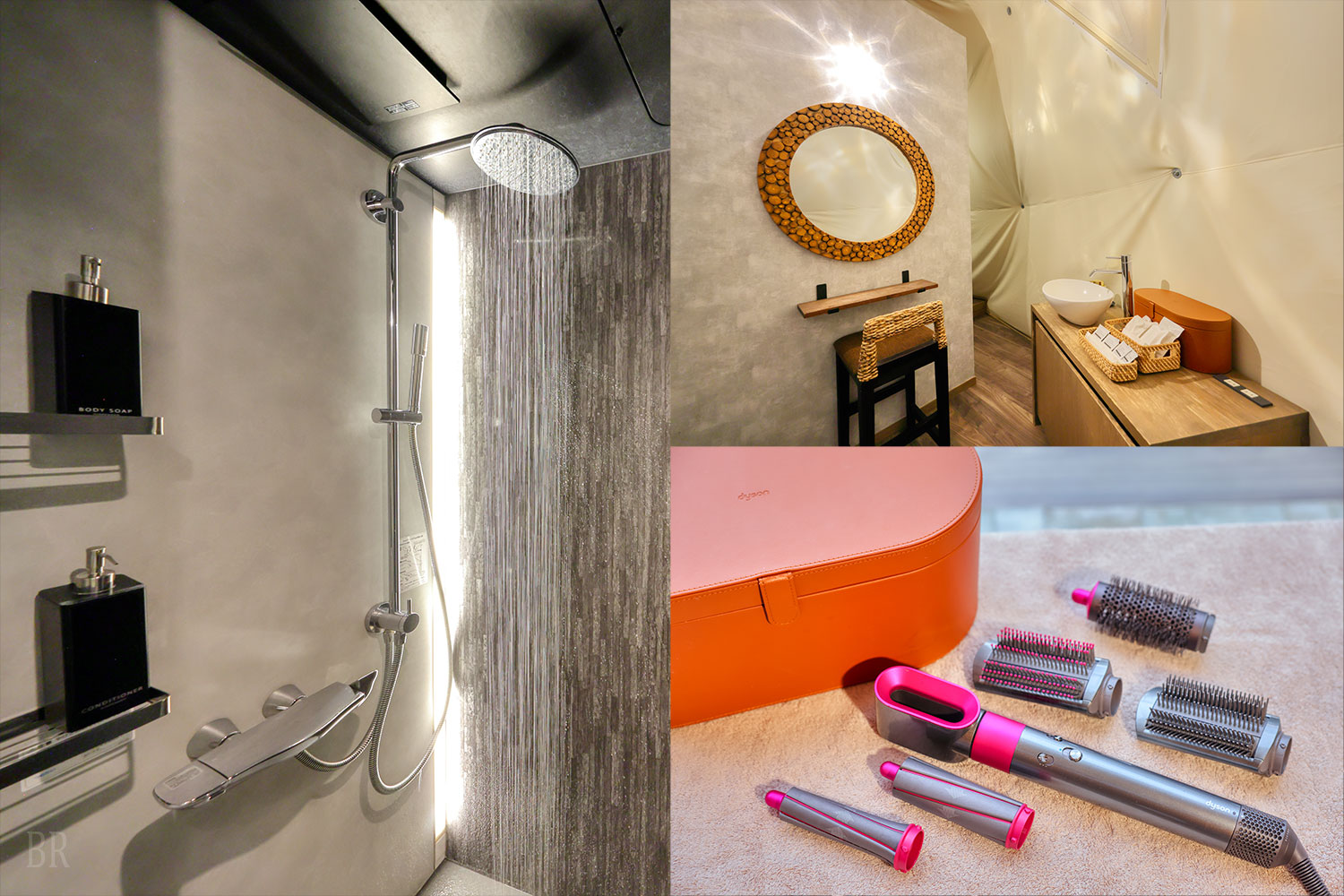 設備 全室レインシャワー付きのシャワーブース、温水洗浄式トイレ、ダイソン空気清浄機、ダイソンドライヤー&ヘアアイロン、プロジェクター、望遠鏡、ハンモック、電気ケトル、静音型冷蔵庫、フロアスタンド、USBコンセント、加湿器